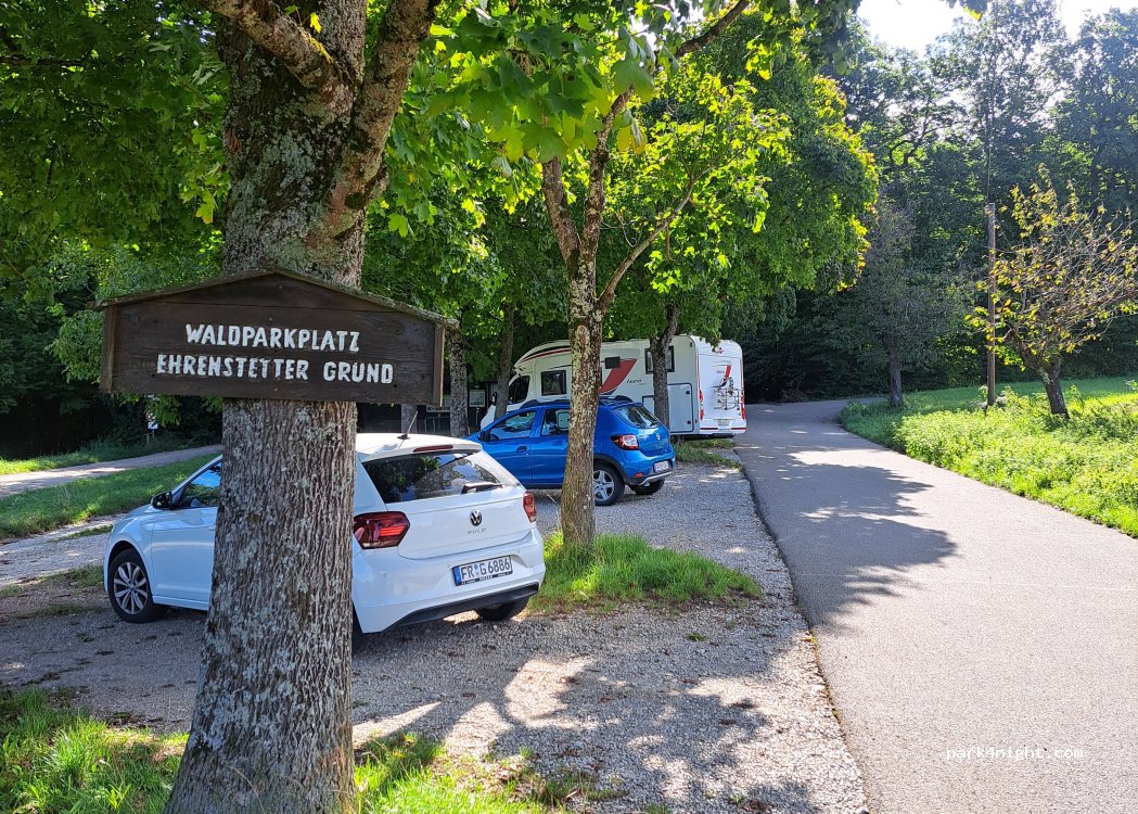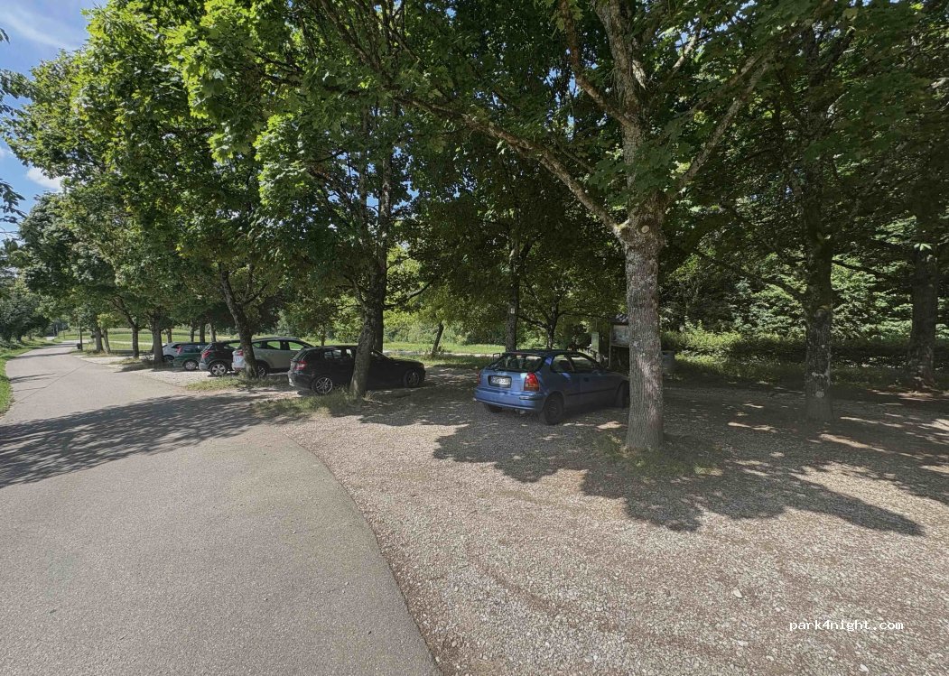 Ruhiger Parkplatz mit viel Schatten (unter Bäumen) am Waldrand. Viele Wanderer und Hundebesitzer.