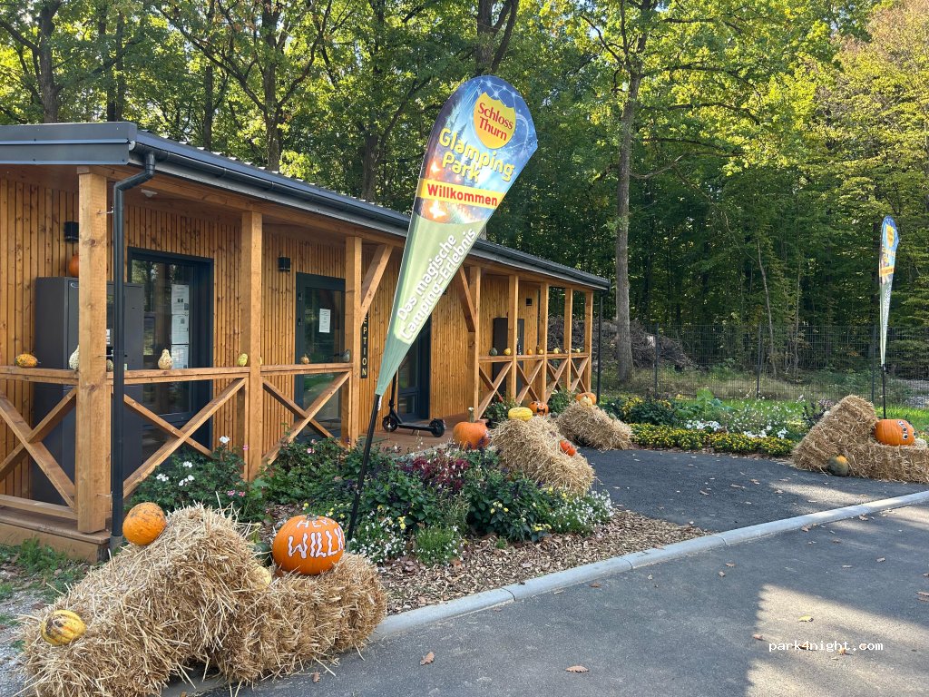 Der neu eröffnete GlampingPark grenzt an den Freizeitpark Schloss Thurn. Übernachtungen können in Verbindung mit Parkeintritt oder separat gebucht werden. Übernachtet werden kann im eigenen Wohnmobil, Wohnwagen, Camper oder in einer Lodge. Die Stellplätze sind auf der einen Seite von Wald umgeben, grenzen an der anderen Seite an den Freizeitpark. Familien mit Kindern oder auch Alleinreisende sind herzlich willkommen, genauso wie Hunde (außer in Lodges). Für Hunde gibt es außerdem einen extra Hundeplatz oder auch Stellplatz mit Hundezaun. Obwohl die Anlage erst am 18.7.25 eröffnet hat, ist schon einiges geboten. Hüpfkissen für Kinder, schöne große Stellplätze, Snackautomaten, abendlicher Zugang zum Freizeitpark zum Abendessen, helle und saubere Sanitäranlagen, Komfort und Exklusivstellplätze - hier fehlt es an nichts. Egal ob für einen kurzen Zwischenstop mit Besuch im Freizeitpark oder mehrtägiger Aufenthalt (Ausfluginfo für fränkische Schweiz liegen aus), hier kommt jeder auf seine Kosten. Wir freuen uns, wenn wir wieder kommen und der Platz bestimmt noch ein paar neue Überraschungen bereit hält.