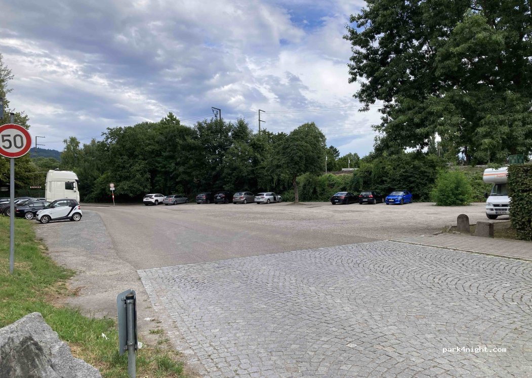 Unbefestigter ebener Untergrund, wenig Schatten, direkt neben der Bahn. 5min zu Fuß ins Zentrum. Badesee 10min und Schwimmbad mit Park 2min entfernt.