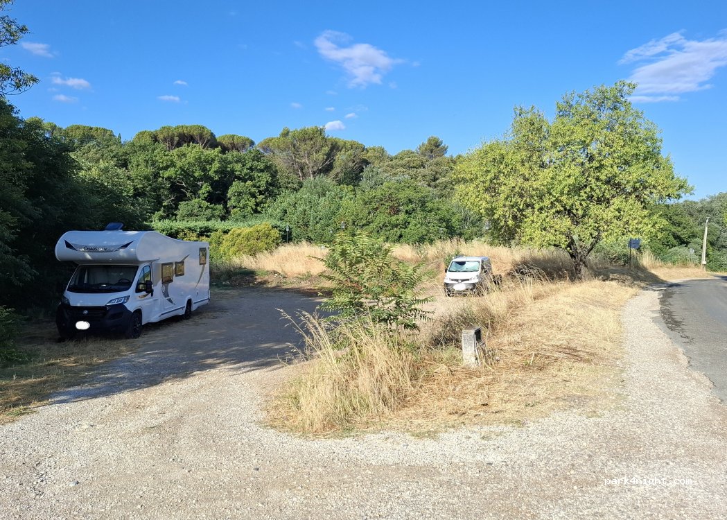 Place de stationnement adaptée aux camping cars, recommandée par deux habitants. Parfait pour passer la nuit.