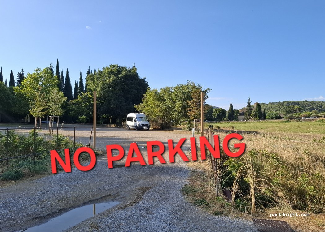 Tenga en cuenta que esto NO aplica a la gran plaza (petanca y plaza del mercado con vistas al castillo) situada justo encima, donde está prohibido aparcar (no hay señal, pero hay una barrera que la gente retira regularmente para poder pernoctar).