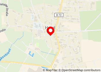 A paved, free parking space with nine individual bays, bordered by low wild rose hedges. The space is free of charge. Electricity can be purchased for a fee if desired. Free Wi-Fi has recently been available around the FeG Hesel church. Therefore, there's quite a bit of space on the site.