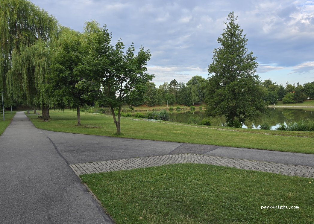 Parking sans restriction à côté d'un parc de loisirs en plein air. Lac de baignade, pumptrack, kiosques de restauration, aires de jeux, terrain de volley-ball, deux tremplins et une piste de rollers. Les toilettes sont correctes et régulièrement nettoyées. Le parking est situé à côté d'une route de taille moyenne, un peu fréquentée mais pas trop bruyante. Un endroit agréable pour se détendre et se garer la nuit. Consultez Google pour plus de photos et d'avis.