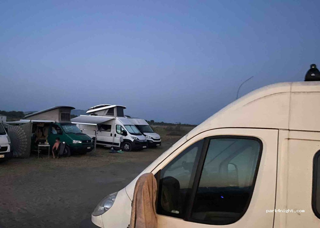 Laguna Kite Beach au bord de l'eau, places de camping-car avec électricité 15 euros la nuit, à 50 mètres de l'eau, réveil sur l'adriatique, soit de kitesurf avec secu 10 euros par jour pour décollage et sécurité, vent side on thermique top !! caravanes spartiates à 40 euros la nuit aussi accès camping-car facile, route en caillou mais praticable