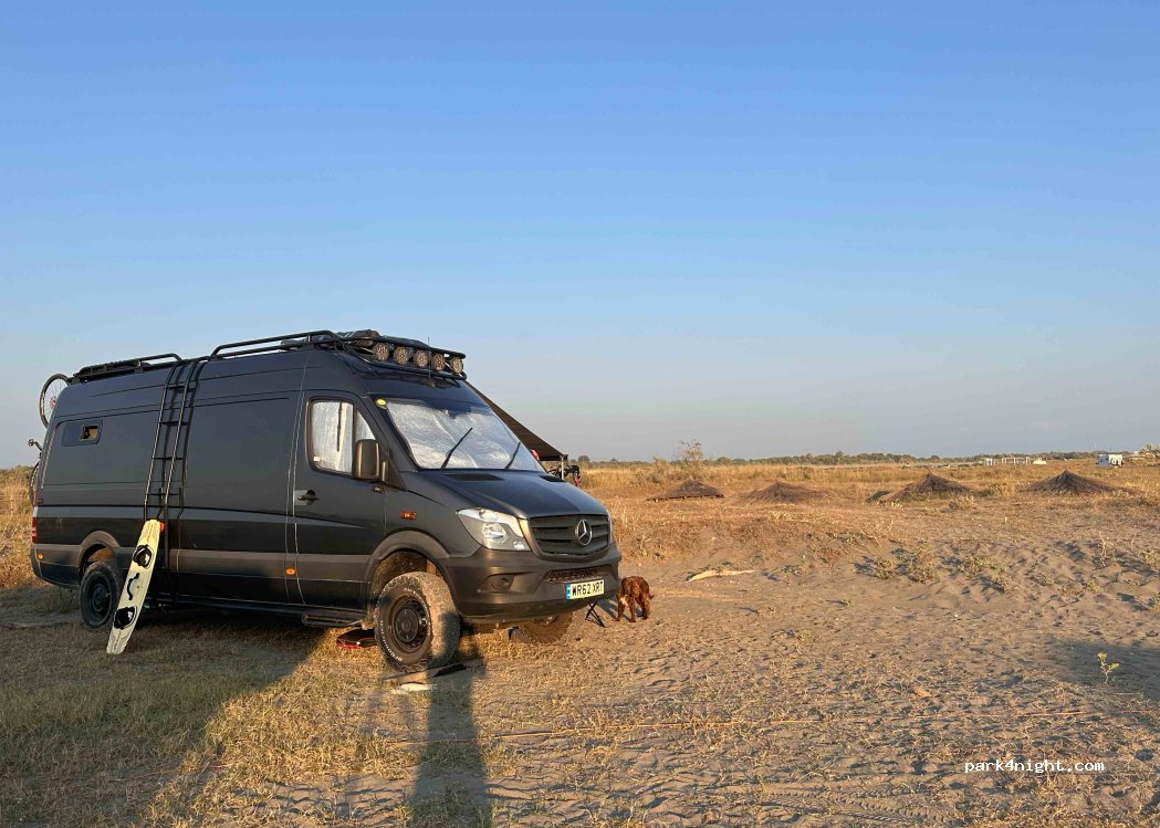 Laguna Kite Beach on the water's edge, campervan pitches with electricity 15 euros per night, 50 meters from the water, wake up on the Adriatic, or kitesurfing with safety 10 euros per day for takeoff and safety, top thermal side-on wind!! Spartan caravans at 40 euros per night also easy campervan access, gravel road but passable