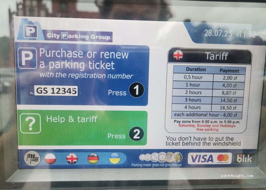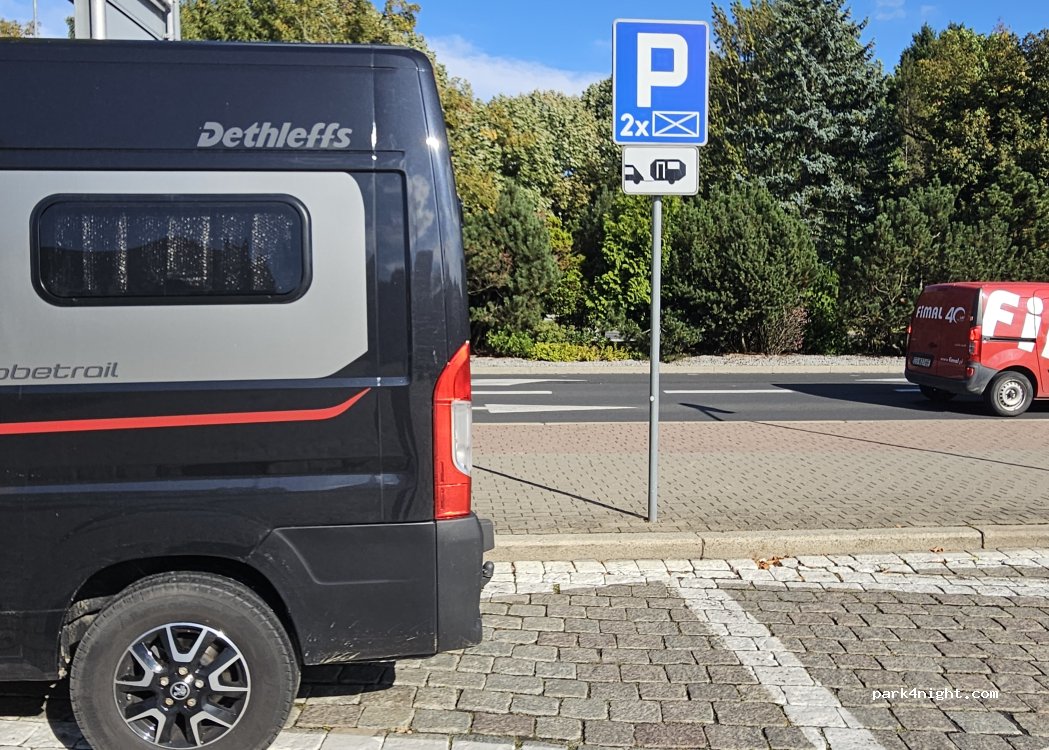 Tagesparkplatz für einen Stadtbummel. Zwei Parkplätze für Wohnmobil oder Auto mit Wohnwagen vorhanden.