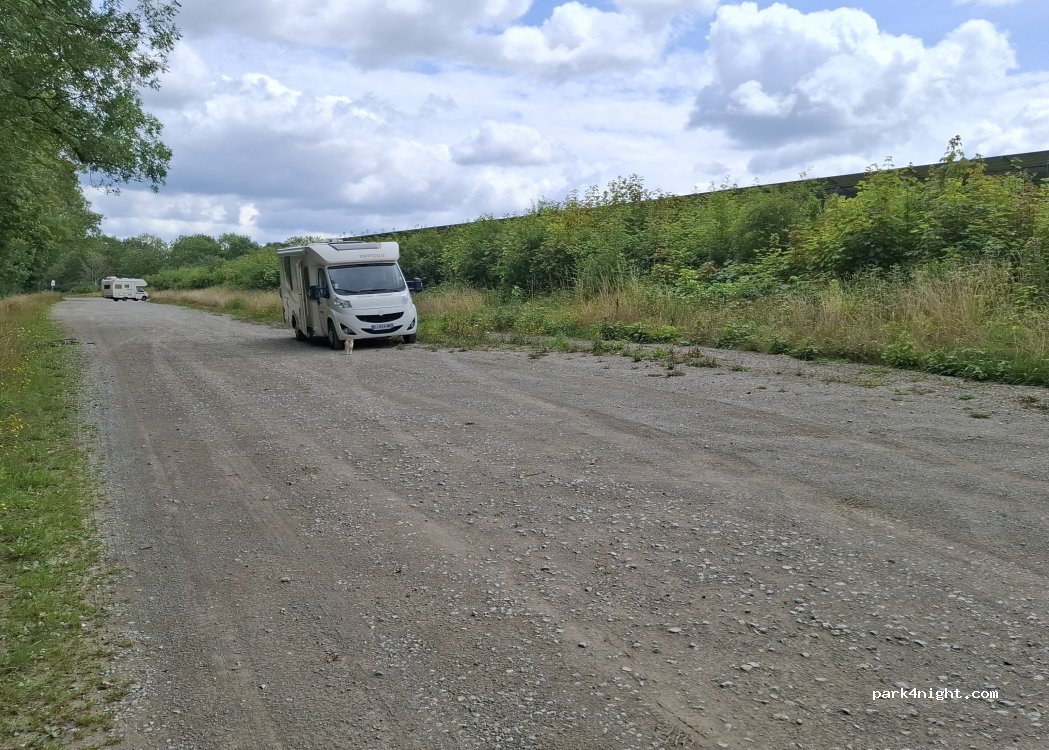 Parking derrière une centrale solaire, à l'orée d'un bois. En pleine nature, un endroit très calme. Idéal pour une pause.