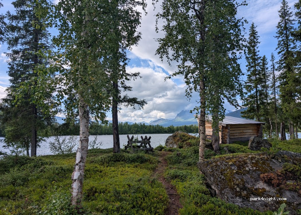 Wunderschöner Platz, 10 Gehminuten zur Fjällstation Kvickkjokk STF. 3 Toiletten, 2 Duschen, 1 Sauna/Bastu.