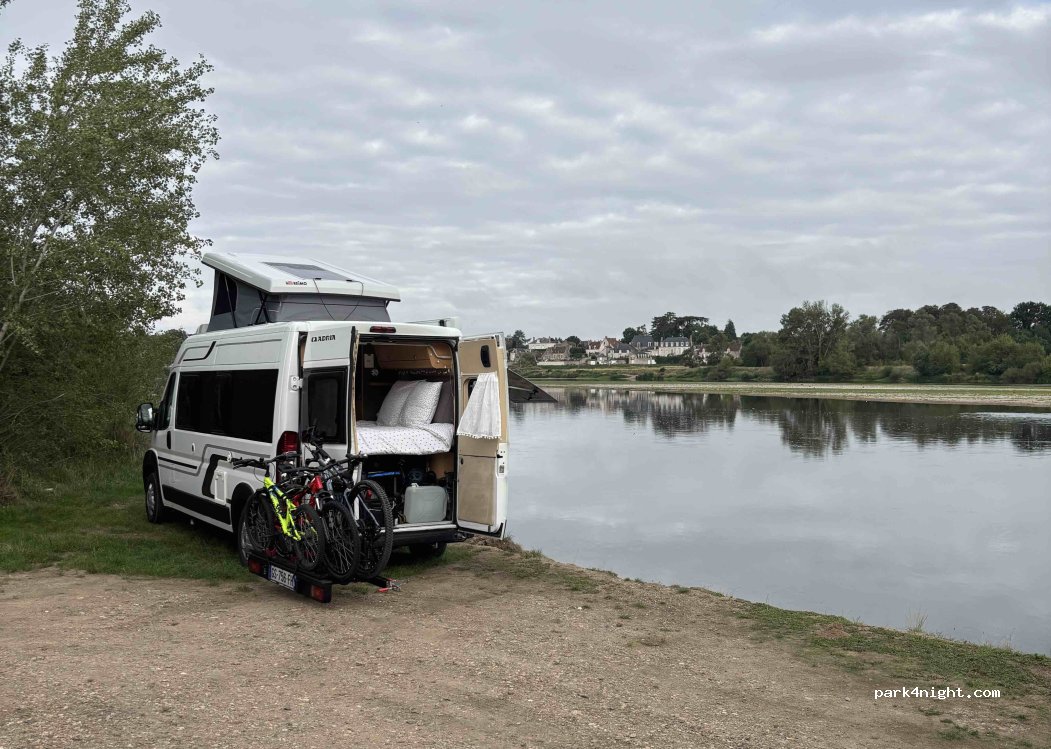 Wow! What a superb location on the banks of the Loire. Amazing outlook over the river. Great walks along the river. No facilities but a very peaceful night. A little traffic noise during the day.