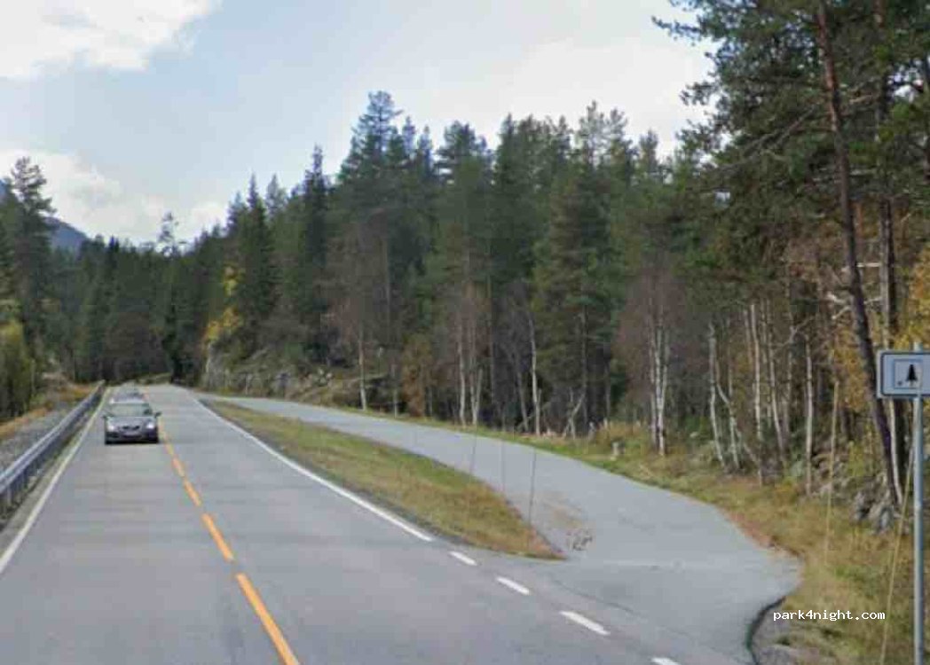 Pull off along the E134 with a bench. Park close to the side so that others can pass. Noise from traffic