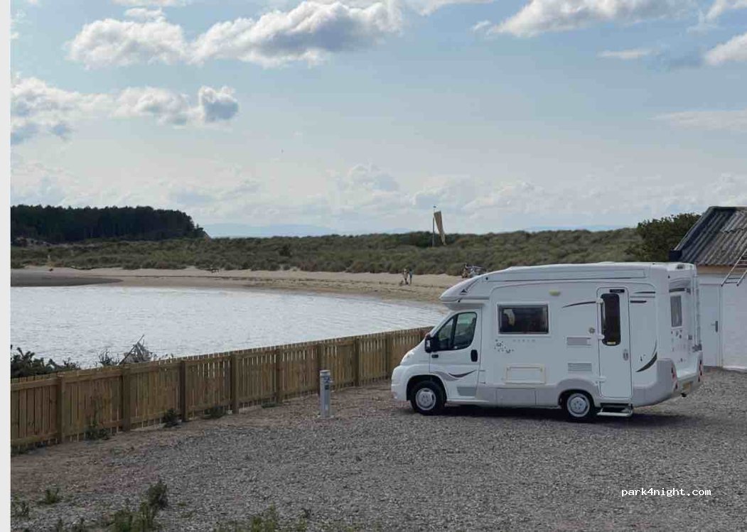Findhorn Marina Motorhomes. Great on the beach location with all services. Booking must be done online in advance. next to the Captains Table Pub and Restaurant and Ice Cream Parlour.
