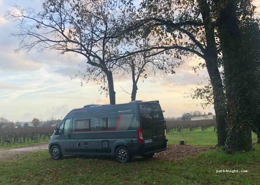 Wat een unieke locatie! Tussen de druiven, prachtige zonsondergang. 's morgens hebben wij hier wijn gekocht, zeer schappelijke prijs van 10 euro per fles. Voor klanten is de overnachting gratis. Water en elektriciteit is voorzien. Ideaal als je Saint emilion wil bezoeken, vriendelijke eigenaar