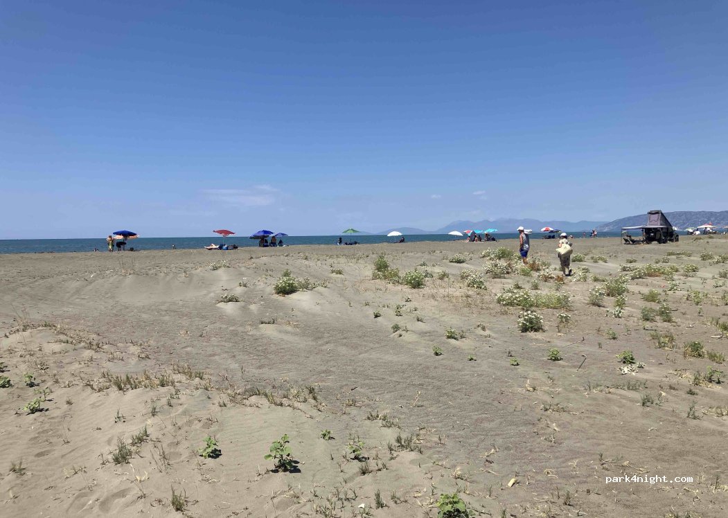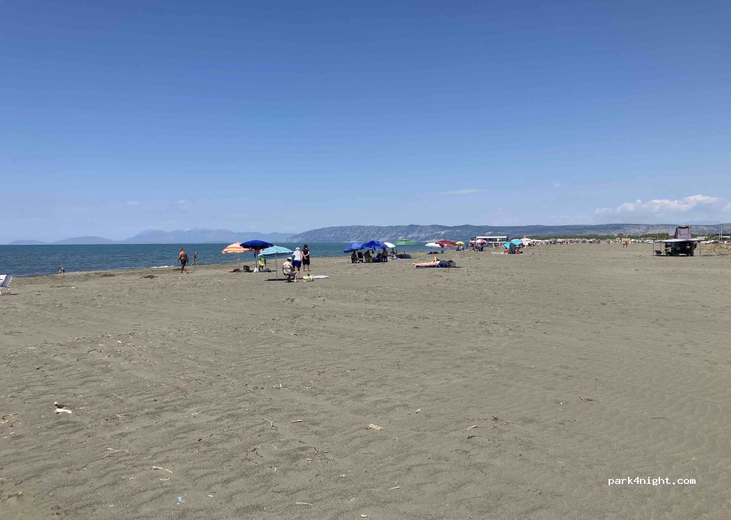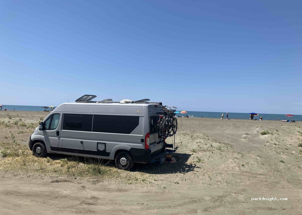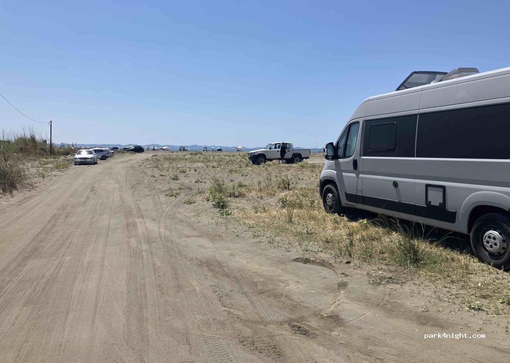 Great spot right by the beach. If you have a 4x4, you can drive even closer. Sandy beach, not crowded even in high season. Peaceful and quiet, with frequent police patrols during the day. This is just a parking area where overnight stays are allowed — no facilities, self-service only. A restaurant is nearby. Good LTE signal. Perfect for a calm stay close to nature. Adrian from Poland (fiat ducato).