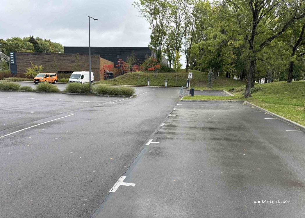 Large parking area with 1 Electric pole. On a saturday night quiet. A good place to stay overnight when your passing Thionville.
