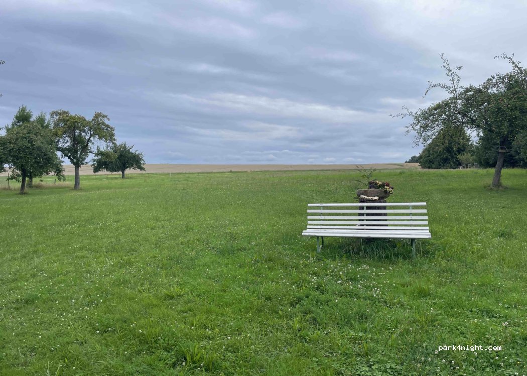 A large meadow behind the house with a view of the expansive landscape – quiet and relaxing. Our vacation apartment is also available for use.