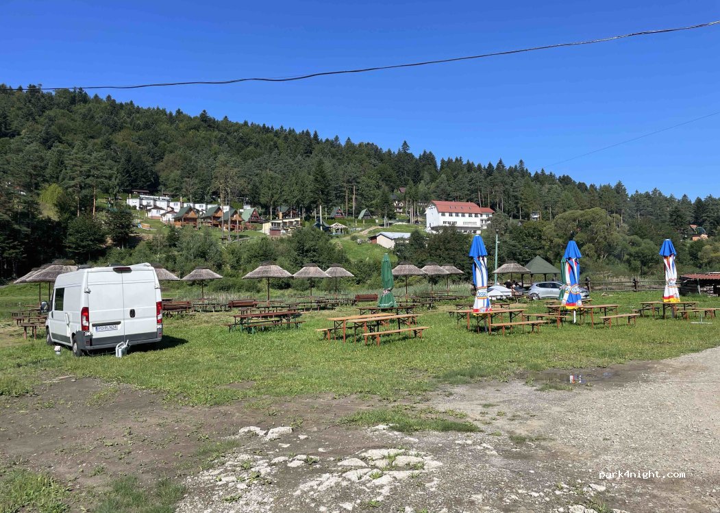Un camping temporal, pero funcional, en la llanura aluvial del río Wisłoka, en Krempna. Propietarios muy amables. Duchas y baños decentes y limpios. Entrada junto a las piscinas, junto a la valla.
