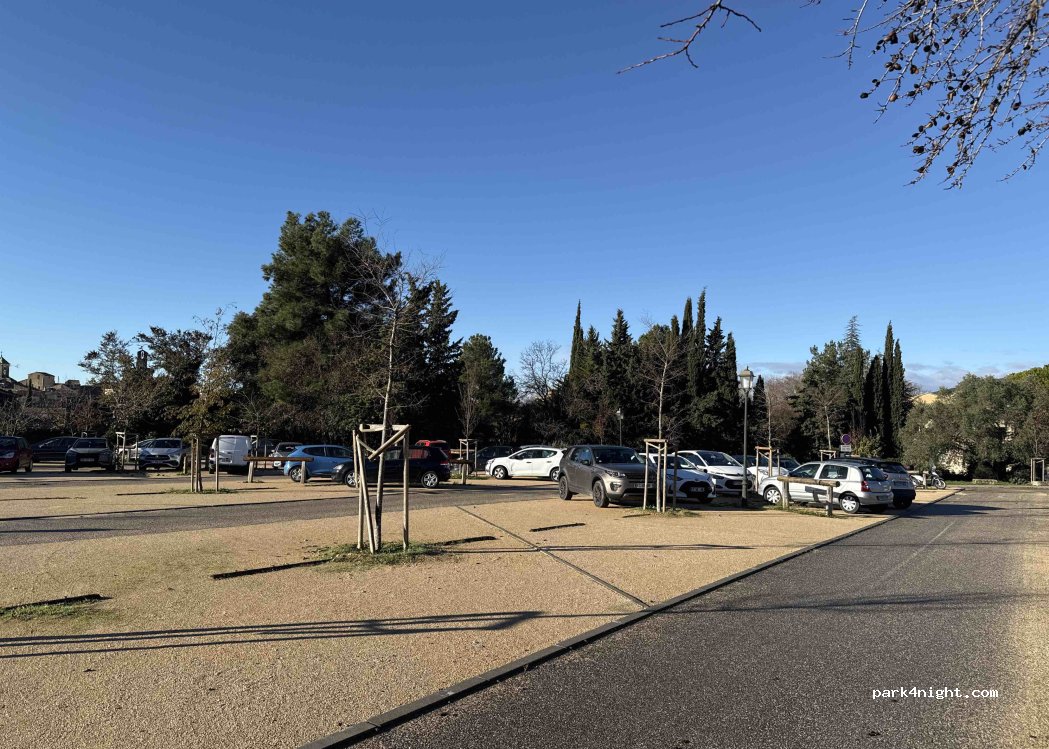 Nous avons pu nous y stationner avec un véhicule de 7 m, sans gêner, mais ce n'est pas forcément évident et au petit bonheur la chance, sachant que ce parking doit être souvent saturé. À mon sens, il s'agit plus d'un parking pour voiture, et les CC devraient plutôt se diriger vers des places un peu plus éloignées du centre du village.