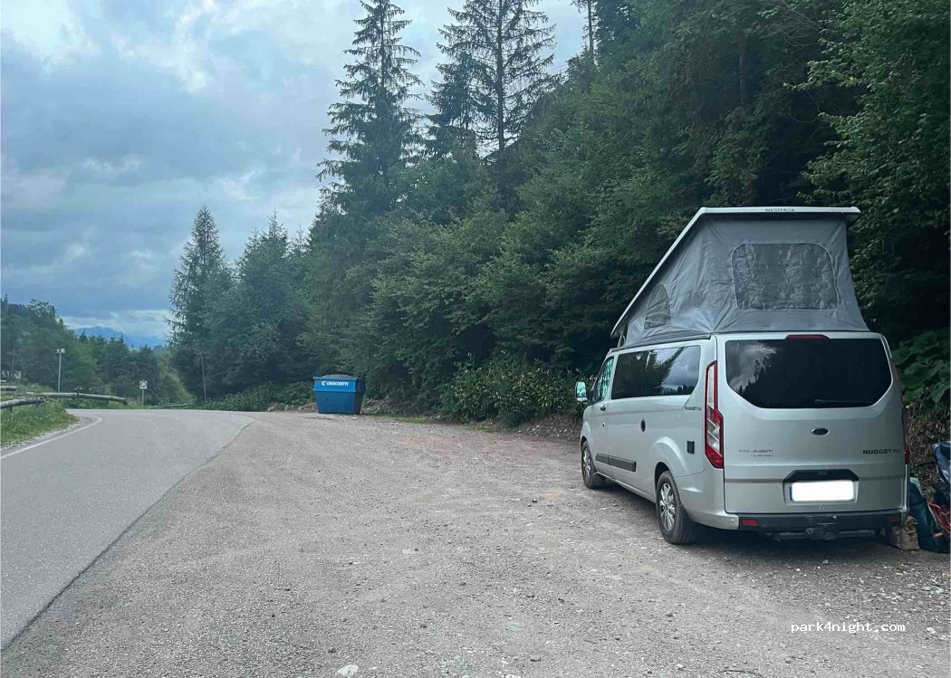 Fort appréciable de trouver un endroit gratuit dans les Dolomites, région qui ne fait pas de cadeaux aux touristes. Petit débit data chez SFR. Cet emplacement peut servir de base pour aller randonner vers Medil et Penia.