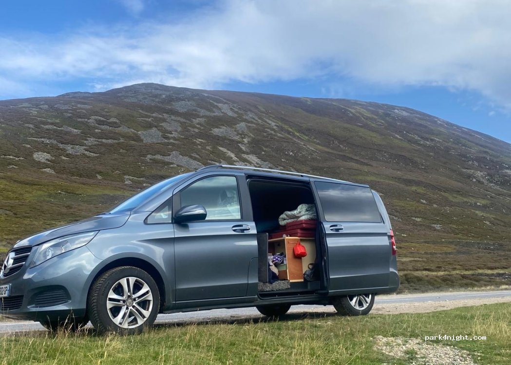 Pequeño lugar al borde de la carretera, pero lo suficientemente amplio como para estar apartado del tráfico. Se pueden aparcar dos furgonetas. Un pequeño arroyo corre por debajo.