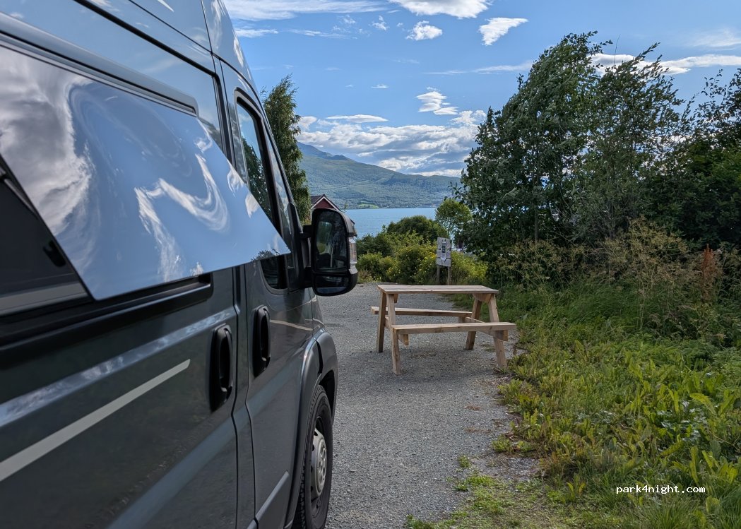 Parken und Übernachtung ausdrücklich erlaubt. Spenden erwünscht. Kleiner Picknicktisch vorhanden. Liegt an einer Straße, aber kaum Verkehr. Wir haben eine sehr ruhige Nacht verbracht. Vielen Dank für diese schöne Gelegenheit.