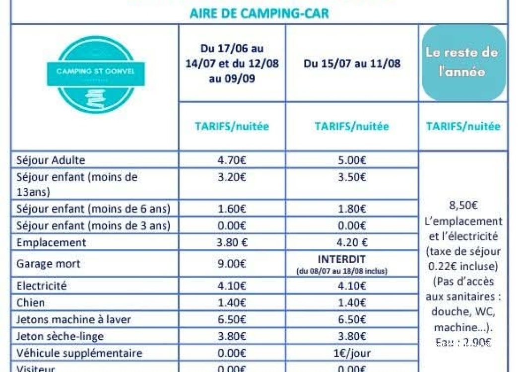 A campsite like in the old days, where caravans dominate. A family campsite that welcomes families, but also hikers and cyclists who pitch their tents for the night. More and more campers and vans are also stopping here. The campsite is open from mid-June to mid-September. The rest of the year, a terminal manages part of the campsite as a campervan area without access to toilets but with campervan services and electricity. Some campervans even meet there to spend the end-of-year holidays.