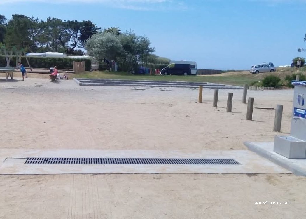 Jusqu'à fin septembre les camping car sont autorisés à stationner sur la partie haute du camping avec la vue sur l' embouchure du port d'Argenton et sur l'île d'Ouessant.9 Euros pour 24h+3€ pour l'eau