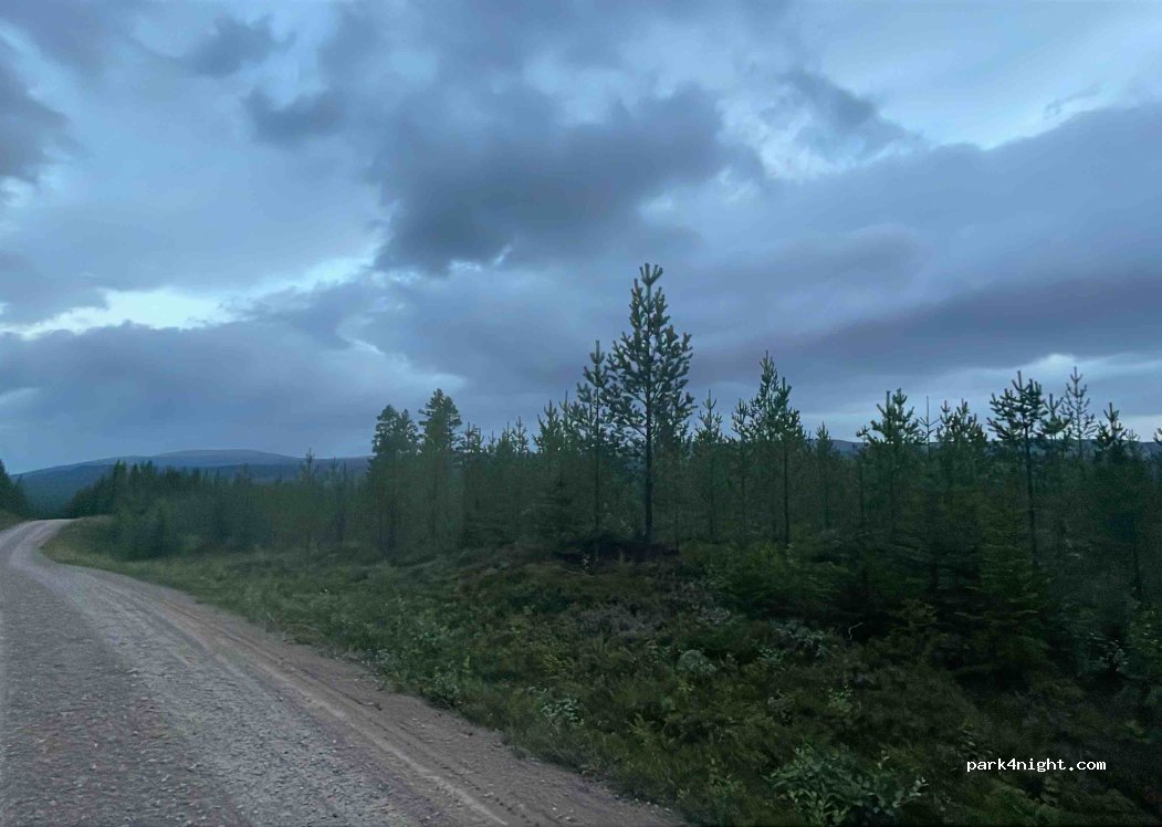 If the location at the viewpoint a little further on is full, this is a good alternative. It's quiet, the parking lights are horizontal, and the parking is well-paved. However, there's less of a view (trees block the view).