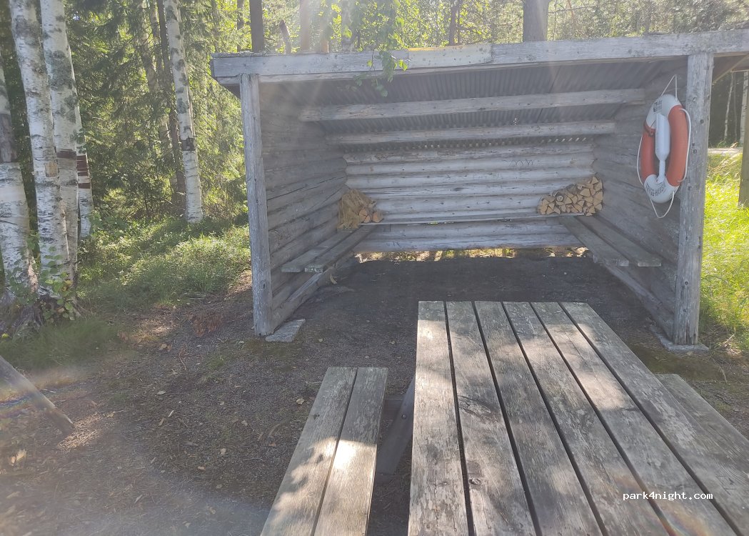 Entlang des Weges (sehr wenig Verkehr) gibt es einen Platz mit zwei Picknicktischen, einer Feuerstelle und einem Unterstand. Am Seeufer befindet sich ein kleiner Sandstrand.