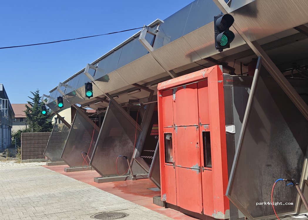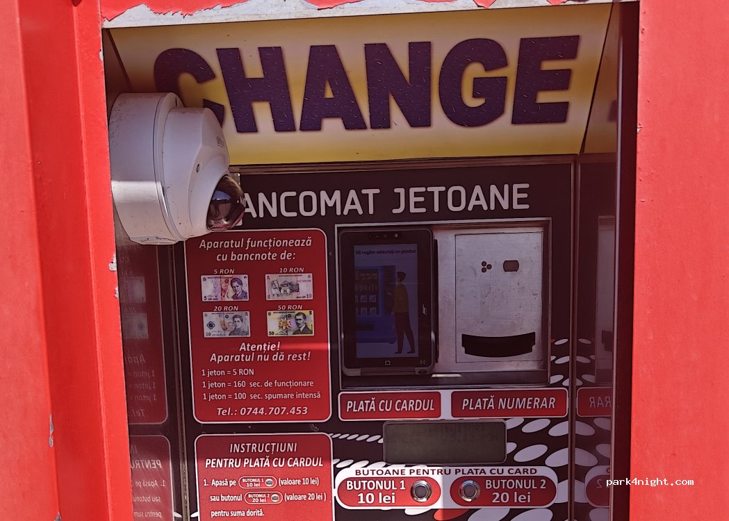 Perfekt om de camper te wassen en grijs water te lozen. Het is de eerste plek voor de overdekte was plekken. In het midden van de wasstraat aan de linker kant bevinden zich 2 machines om tokens te kopen. De ene met cash geld en de ander met kaart. Kosten 10 lei voor 2 muntjes. 1 muntje 160 sec sproeien/wassen , 100 sec intense schuim.
