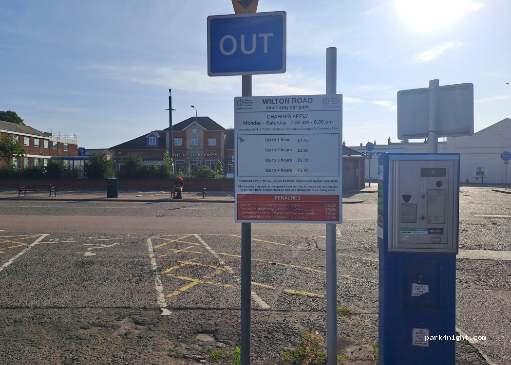 Kurzzeitparkplatz Wilton Road. Kostenlos von 18:00 bis 7:30 Uhr, danach gebührenpflichtig für maximal 4 Stunden Parkzeit. Toiletten und Mülleimer auf dem Parkplatz. Der Parkplatz liegt gegenüber von Wetherspoons. Wir haben letzte Nacht dort übernachtet, keine Probleme. Sie müssen um 7:30 Uhr abreisen oder Ihr Ticket kaufen, da der Wärter auf Zack ist.