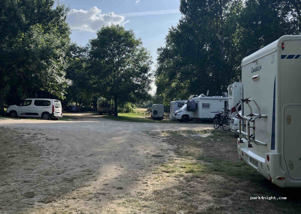 Parking mixte sur herbe en bordure de la Loire, beaucoup de va-et-vient la journée pour le loueur de kayaks, mais très calme la nuit. Boulangerie, épicerie, bar et resto à quelques minutes au centre du village. En pleine nature kayaks, bateau, pêche et nage possible, au bord de la voie cyclable. 4 emplacements selon le panneau à l'entrée mais hier soir nous étions 15 !