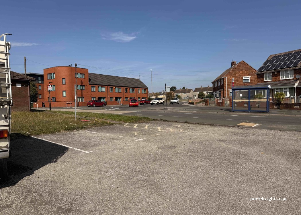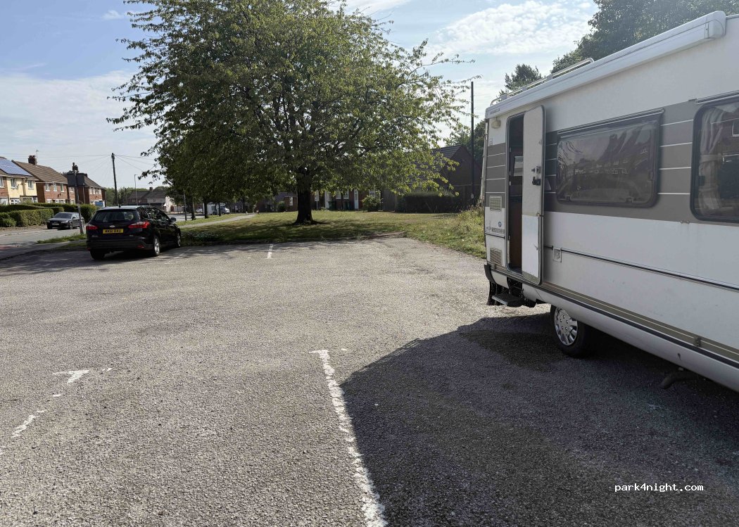 Off road gravel car park, no height barriers or warning signs. Approx 8-10 bays, no facilities. Quiet enough area for a sleep before onwards travel. Shops and takeaways close by if needed.
