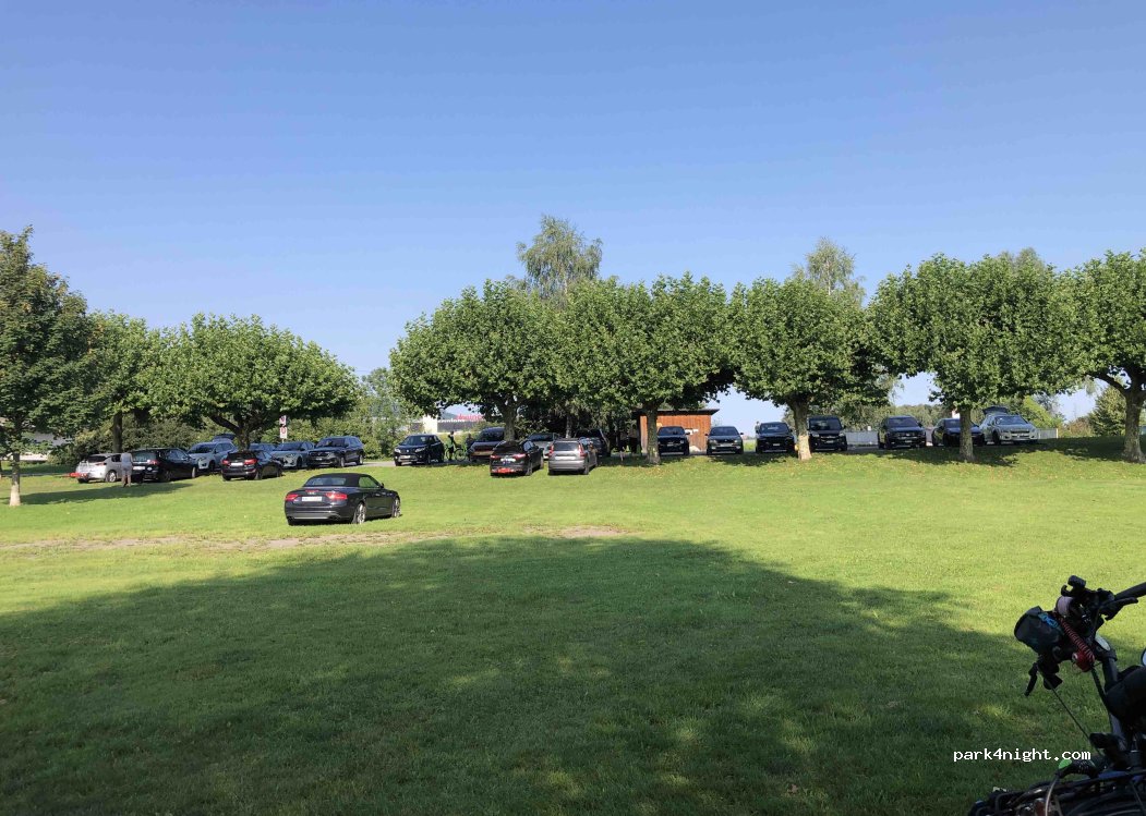 Un amplio aparcamiento en la pradera para la piscina pública, justo al lado del camping Bruggerhorn, muy limpio pero estrecho. Hay algunos árboles que dan sombra, y el césped podría embarrarse con lluvias fuertes. Sin embargo, hay algunas plazas de aparcamiento en terreno pavimentado junto a la entrada. Había una pequeña señal que prohibía acampar, que era fácil pasar desapercibida, pero solo se aplicaba a tiendas de campaña. A nadie le molestó nuestra autocaravana. Por supuesto, no se debe desempaquetar la mesa y las sillas ni extender el toldo. Debe parecer que se está aparcando para la piscina.