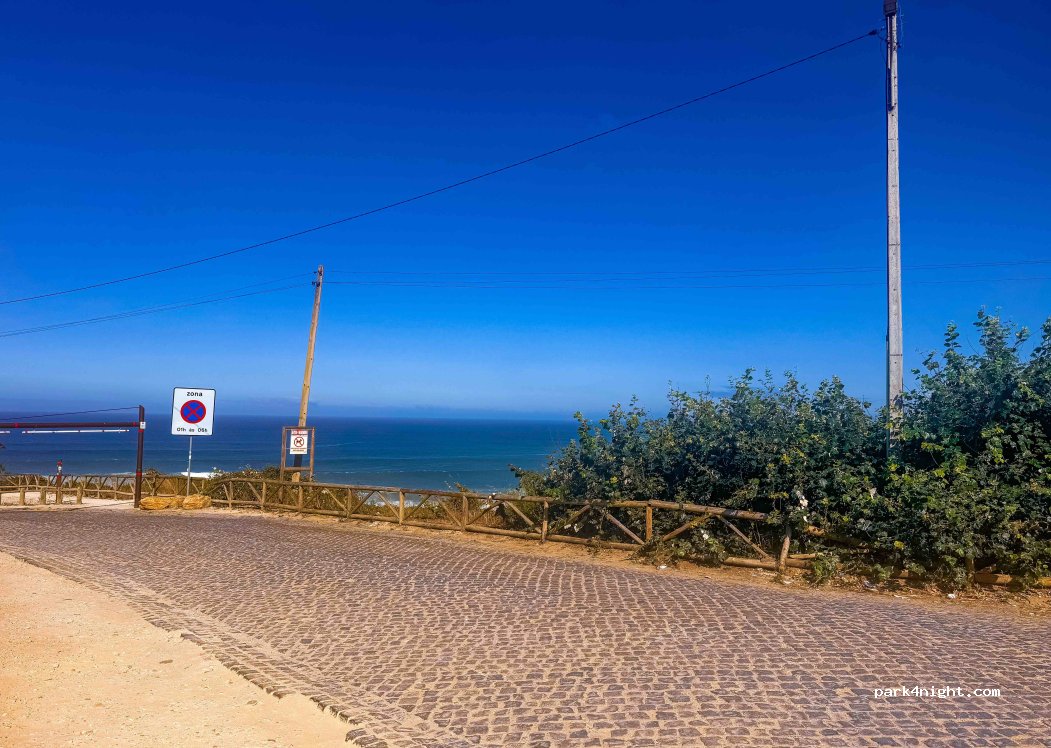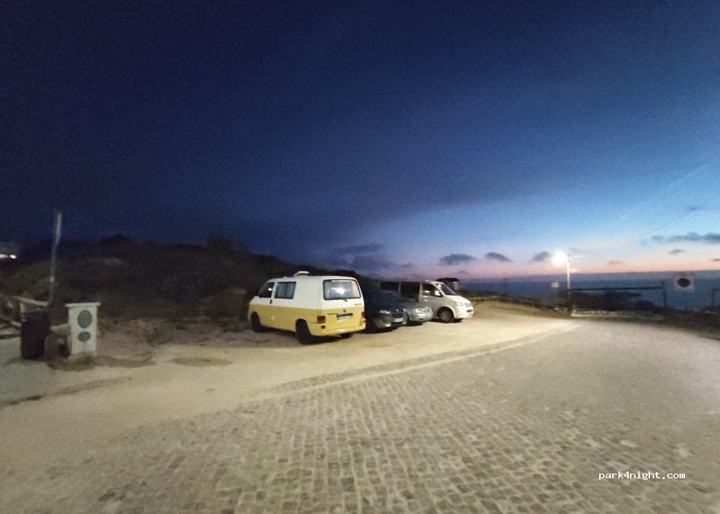 Wunderschöner Blick zum Strand. Viele Camper. Sicheres Gefühl! Ich habe meinen Bus sogar eine Nacht dort stehen lassen während ich in Lissabon war. Nachts dort stehen war kein Problem. Straße war nicht laut. Zu Fuß 15 min ins Stadt Zentrum.