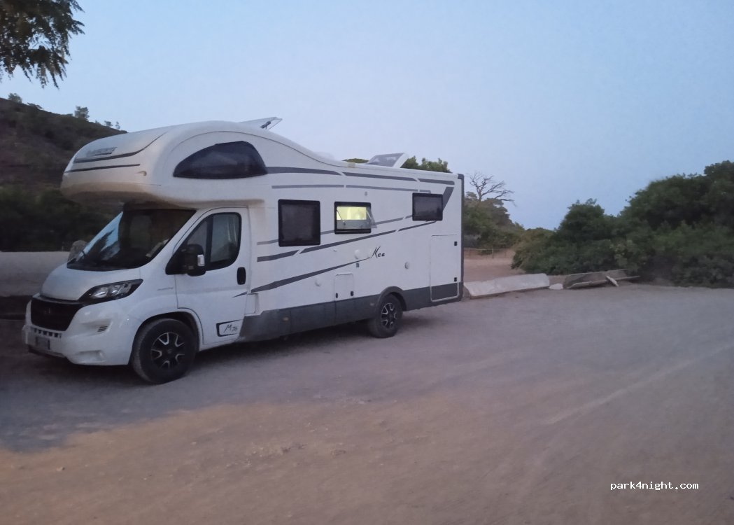 Piccolo spiazzo a bordo strada dove si può rimanere anche la notte. C'è spazio per un paio di camper. spiaggia molto bella a pochi metri.