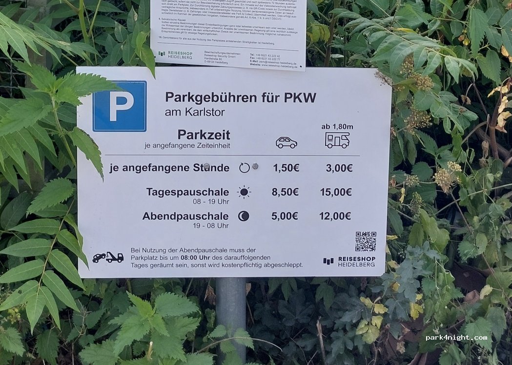 Da es in Heidelberg kaum Womo-Stellplätze gibt, auf jeden Fall nicht zentral, haben wir uns für diesen entschieden. Es ist eher ein schmaler Parkplatz. keine Wendemöglichkeit! Also wenn grösser als VW Bus, rückwarts auf den "Parkplatz" fahren und hoffen, dass man morgens wieder rauskommt. Fußläufig zur Altstadt. Man hört Straße und Bahn gut, in der Nacht weniger. Von 14-10:00h=33€