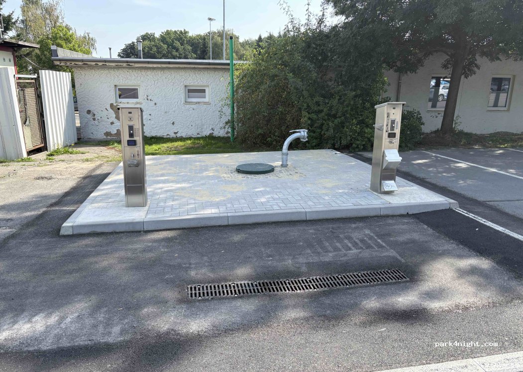 New RV parking area with waste disposal station in Chemnitz. Access via Wittgensdorfer Straße at the Jutta Müller Ice Sports Center. Entrance via barrier system, 15 minutes free.