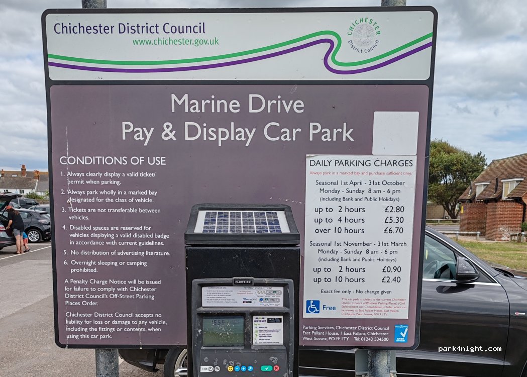 Nice place, adequate rates: up to 2h/£2.80, up 4h/£5.30, up 10h/£6.70. After 18:00 free until 8:00, but no overnight. Toilets open 8-19:30 in season. But "No overnight" signs.