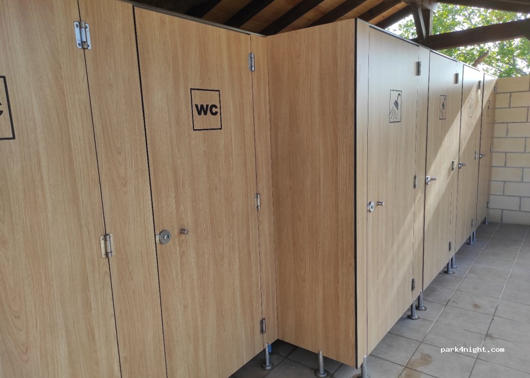Klohäuschen sind in Containern ohne Licht, bei kühleren Temperaturen richtig unangenehm.. Zum spülen sind viel zu wenig Waschbecken vorhanden und irgendwie riecht es auf dem ganzen Campingplatz nach Fäkalien. 27 € / Nacht für 2 Personen, 1 CC eindeutig zu viel.