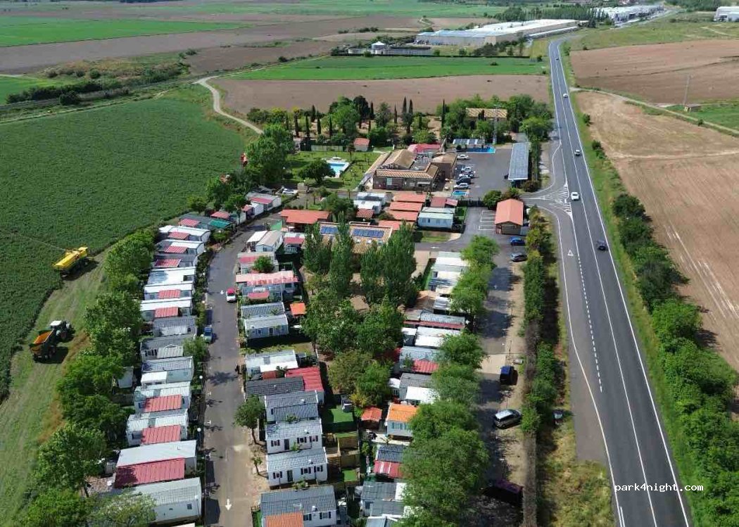 Situé à proximité du parc naturel des bardenas, env 15 min, c’est le plus proche. Site bien tenu, sanitaires propres. Mais cher : 27€ pour 2 avec un van et électricité, et très bruyant jusqu’à tard et très tôt le matin. Des 4h du matin... et les emplacements sont serrés