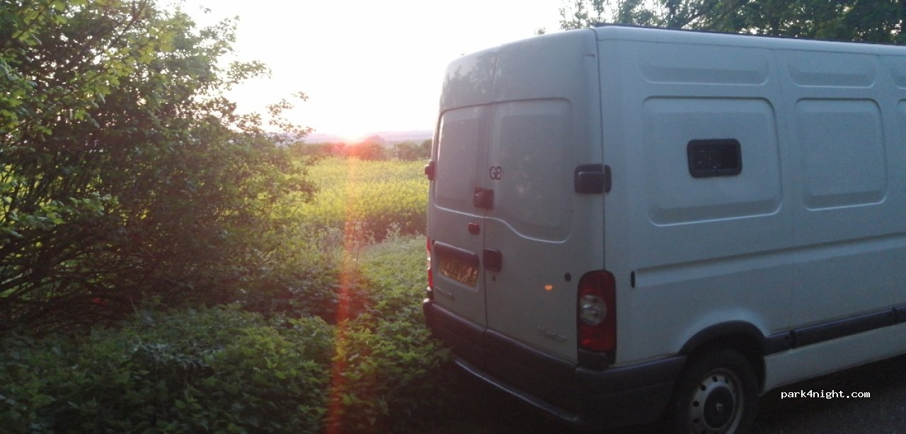 10 mins from home, often sat up here for a brew in the daytime. Rumoured to be a bit of a dogging hotspot, and I'm not talking the walking kind. layby is deteriorating rapidly, big potholes and plenty of low hanging branches to clip larger vans.