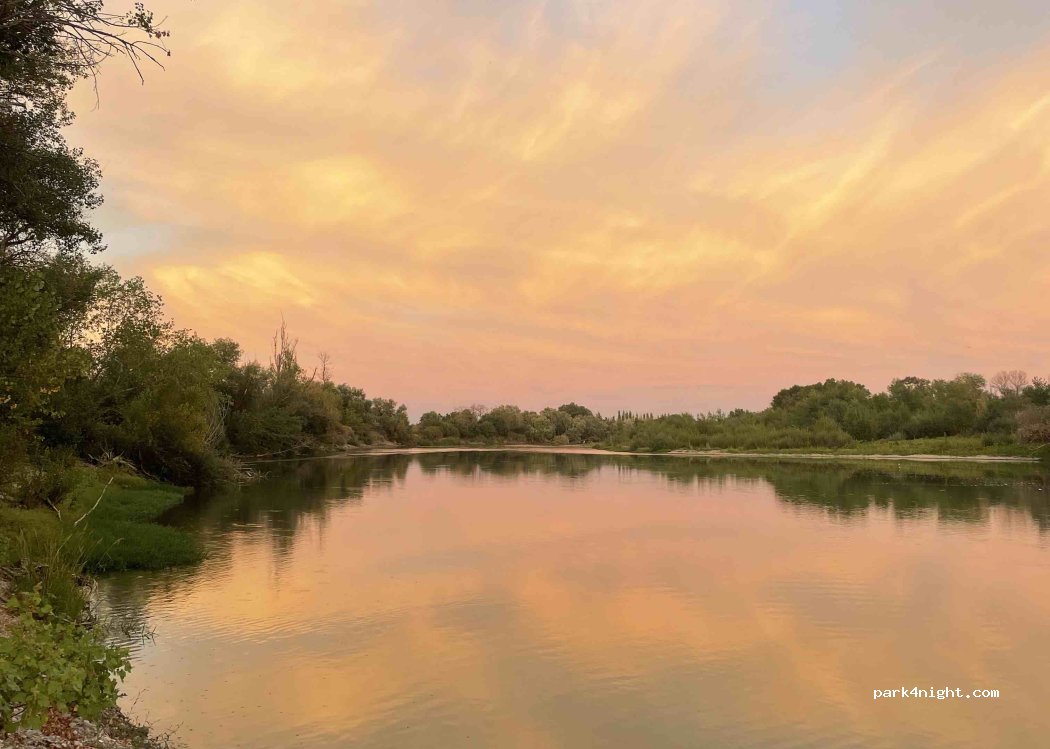 Easy, calm, nice spot. Thanks! Really lush after a day in the desert of the national park. Note: best 4x4 and the height limit due to a tree. PS…. Do bring mosquito spray ;) (the train runs on the other side of the river, but that could not bother us)
