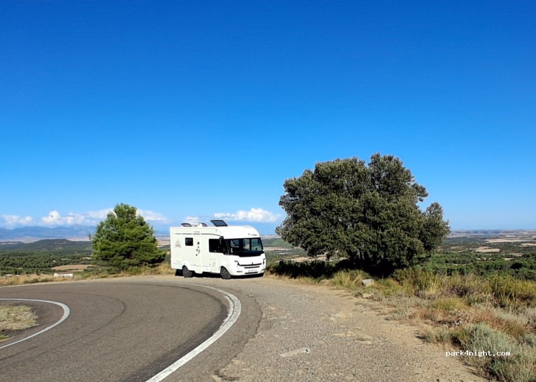Petit parking pour un à 2 véhicules en bord de route peu passante avec vue plongeante sur le village de Casas de esper. Sans aucun service, juste la vue magnifique et le bruit du vent dans les chênes verts et les pins...