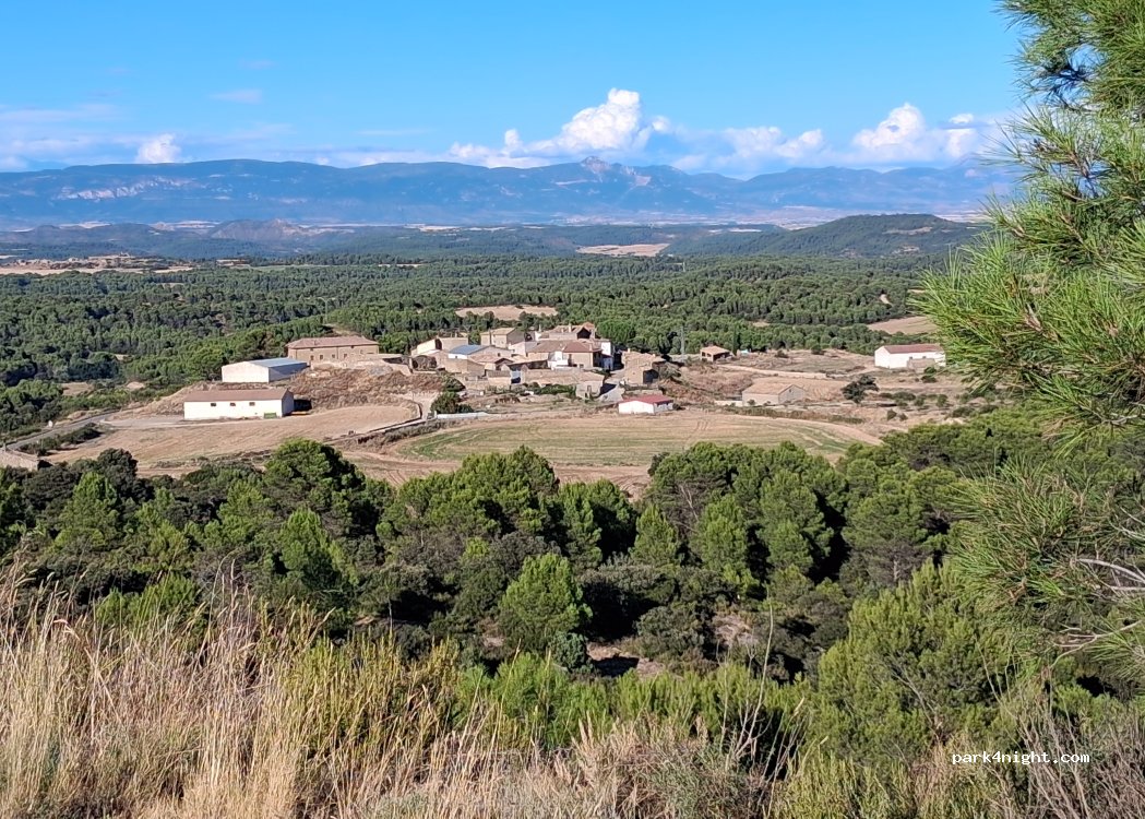Small parking lot for one to two vehicles on the side of a quiet road with a bird's eye view of the village of Casas de Esper. No services, just the magnificent view and the sound of the wind in the holm oaks and pines...