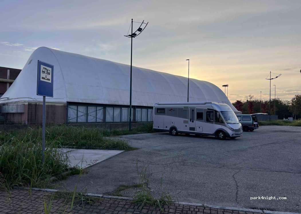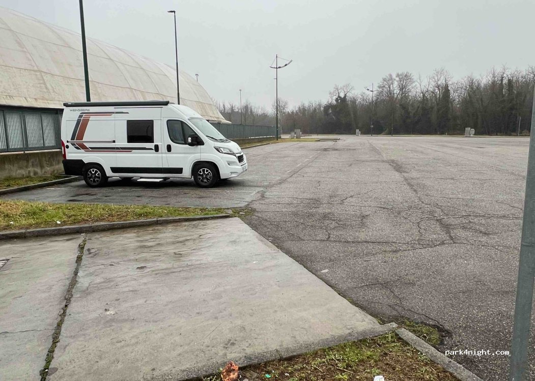 Solo pernottamento come tappa. Notte tranquilla, pure troppo. Eravamo soli. Zona periferica vicina ad impianto sportivo. Presente CS, non utilizzato.