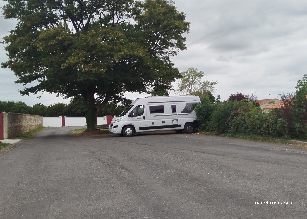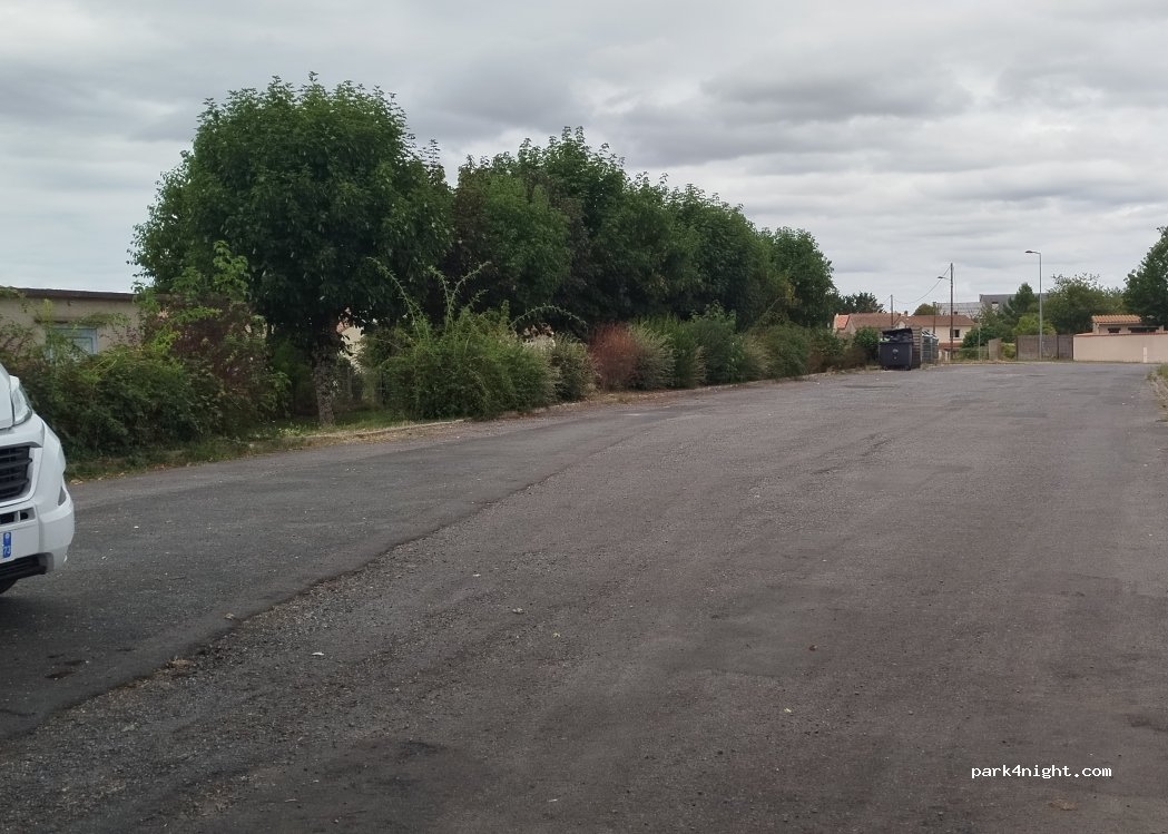 Grand parking, à côté du cimetière, à proximité des villas, mais bien séparé. Aucun panneau d'interdiction. Un espace vert au bout du parking, très calme, est idéal pour un pique-nique.