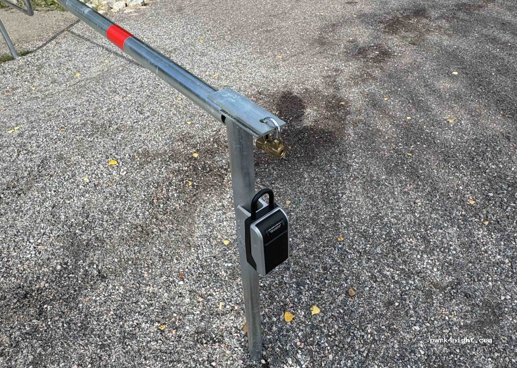 Con la app Matkaparkki, puedes reservar seis parcelas en la carretera asfaltada junto al fiordo y la playa de arena con vistas al astillero Meyer. Puedes reservar una de las seis parcelas a través de la app y ver cuáles quedan disponibles. Tras reservar y pagar, recibirás un código para la caja de llaves en la barrera. Este punto de estacionamiento está junto al otro punto de estacionamiento cercano, pero cuesta 3 € más. Incluye baño, inodoro químico, ducha y electricidad.