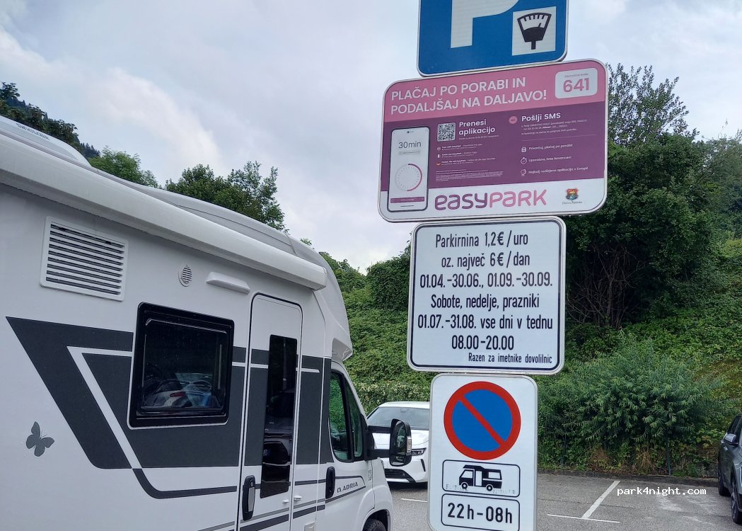 No nos quedamos porque una señal en la entrada indica que es solo para turismos.