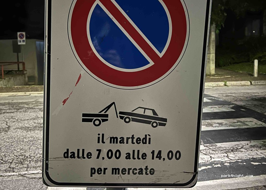Convenient parking, even for vehicles up to 7 meters, is free and close to the town center, where there's a bar and pharmacy. Great for a stopover, there's also a fountain. Parking is not allowed on Tuesdays because of the market. The nearby road is a bit busy, but considering it's in the town center, there aren't any speeding vehicles.