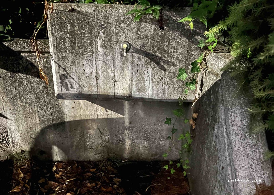 La fontaine n'est pas simple à trouver (il y a aussi une fontaine payante pour les bouteilles, ce n'est pas ça). Elle se trouve sur le milieu du long côté du parking, mur du fond.